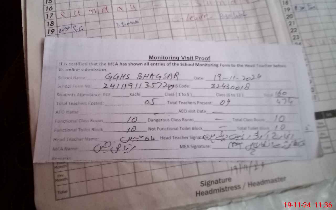 | EMIS Code: 32430018 | Name of School: GGHS BHAGSAR | |||