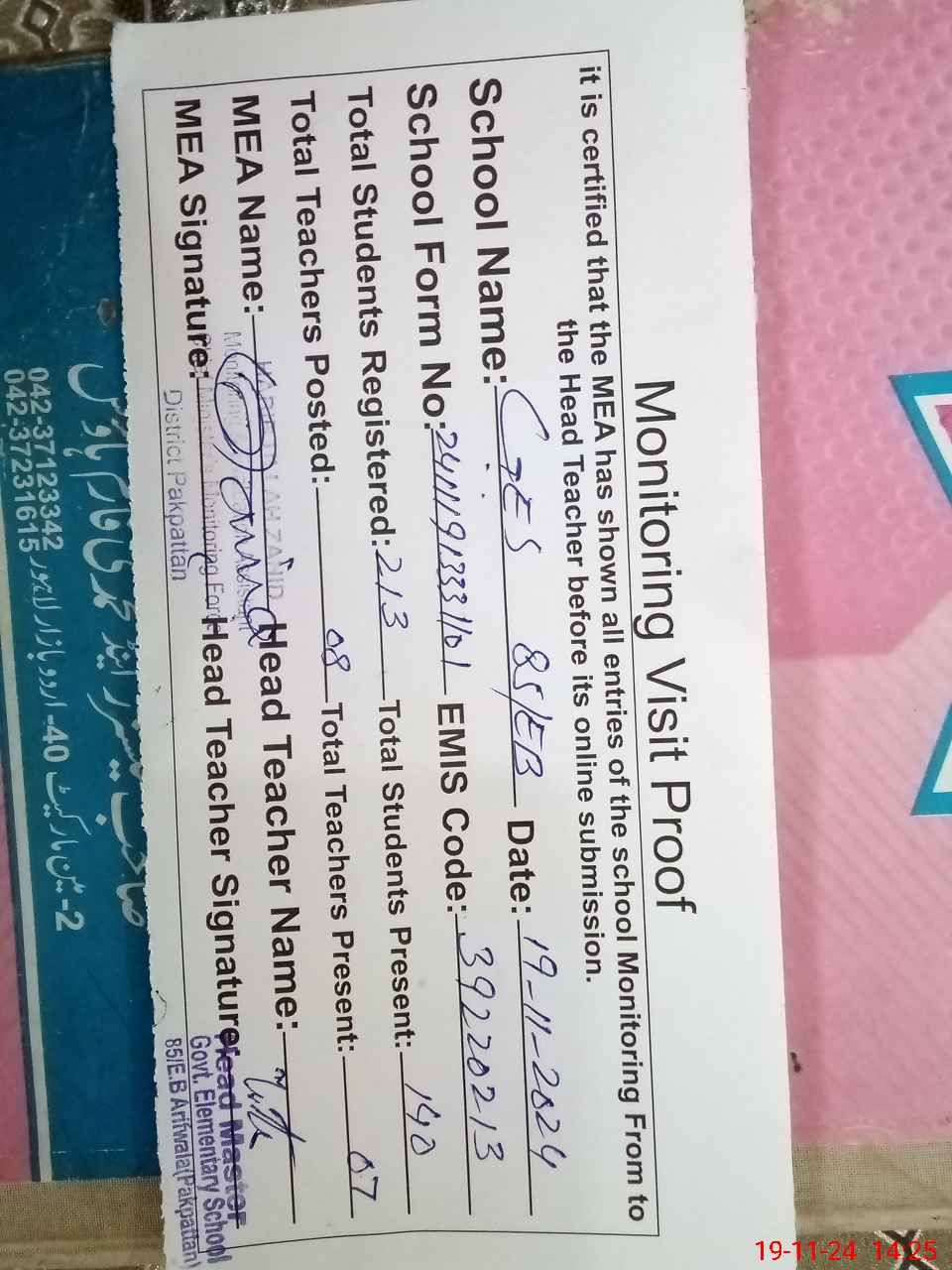 | Certified that this School was Inspected by the Undersigned MEA/DMO Today and the Information Stated Above is as Per Record. | |||||