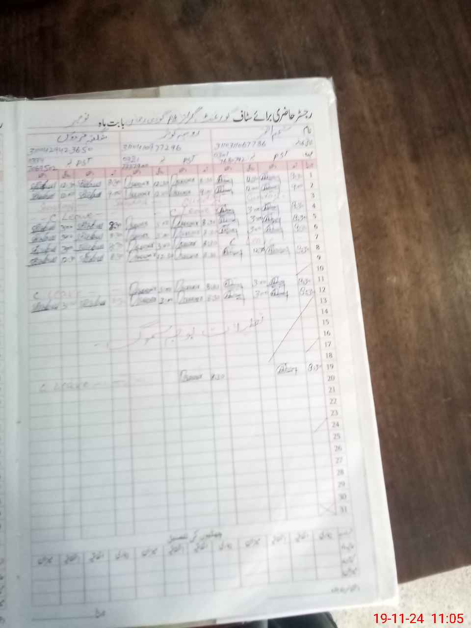 | CNIC | Full Name | Designation | R/C | Absence during last cal. month |
