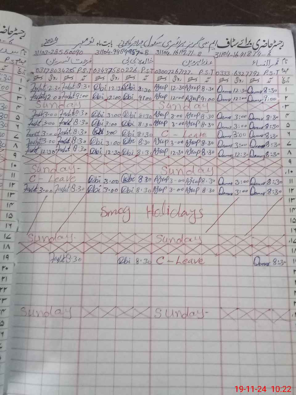 | Leave | Duty | Absent | Maternity | Medical | Ex- Pak |