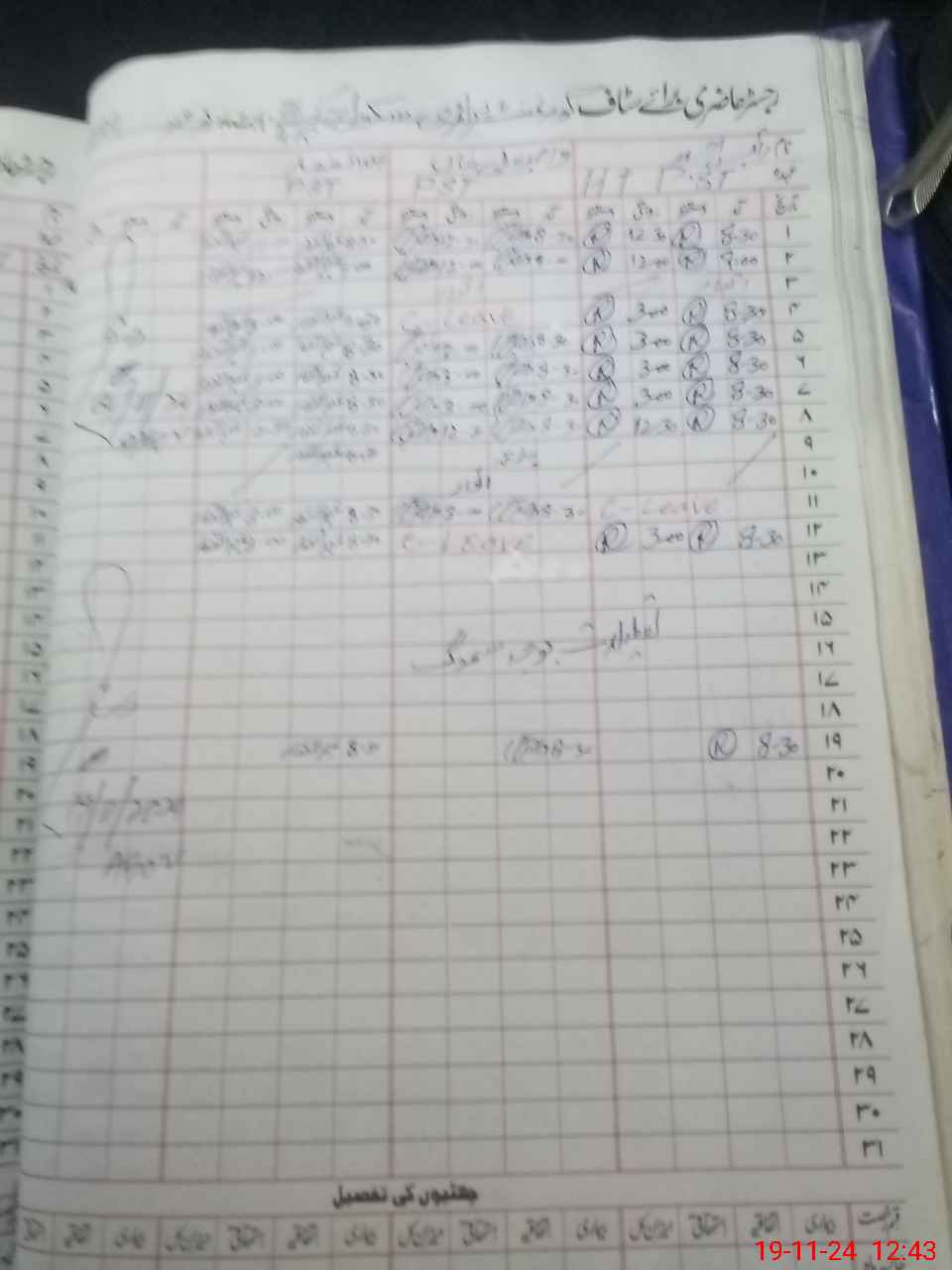 | CNIC | Full Name | Designation | R/C | Absence During Last Calender Month |