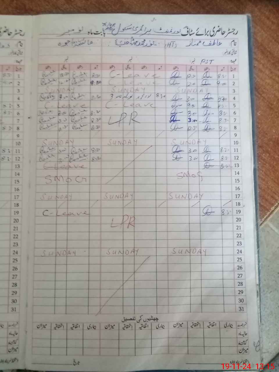 | CNIC | Full Name | Designation | R/C | Absence During Last Calender Month |