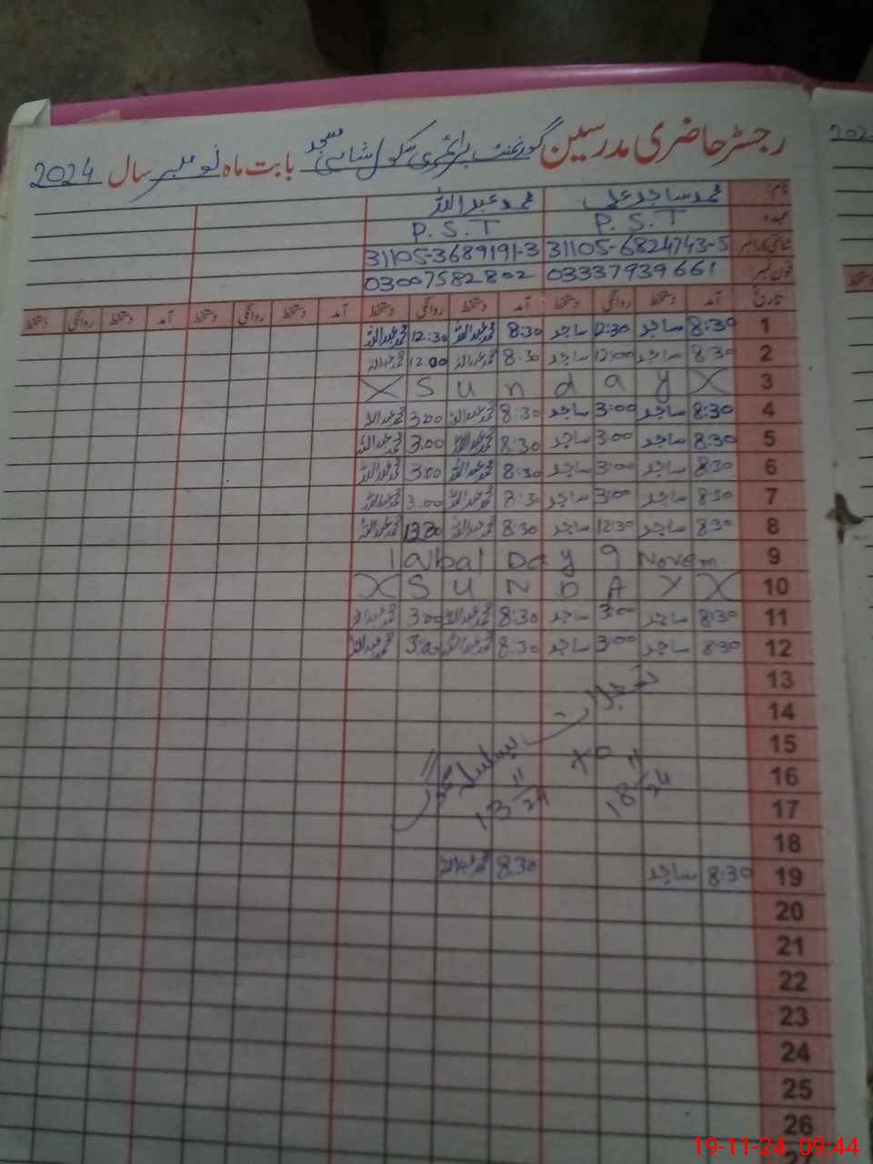| Name: Mu**** Sa**** Al**** Designation: (School Headmaster's/Headmistress's) PST Phone/Cell Number: 03**** |