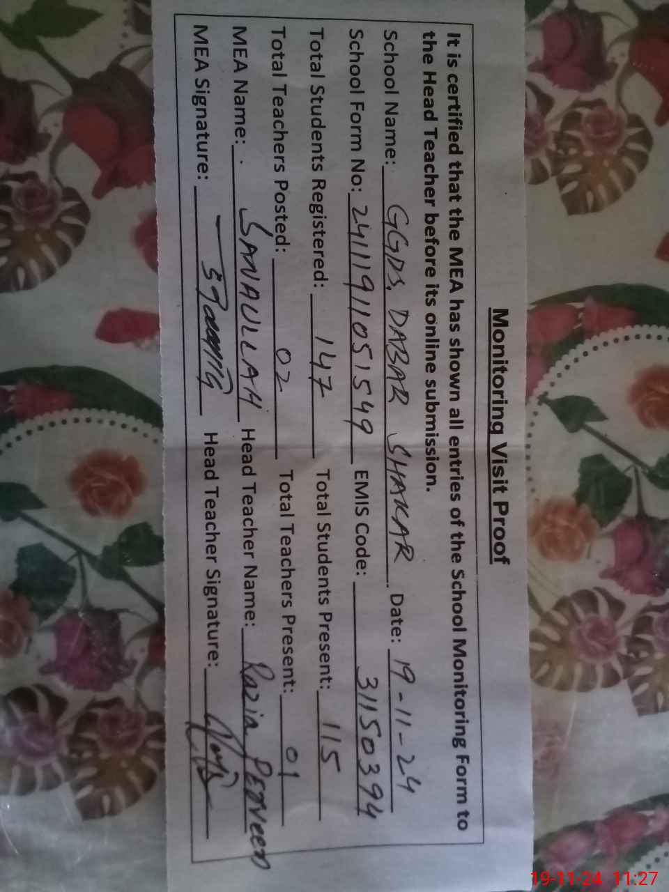 | EMIS Code: 31150394 | Name of School: GGPS DABBAR SHAKAR GUNJ | |||