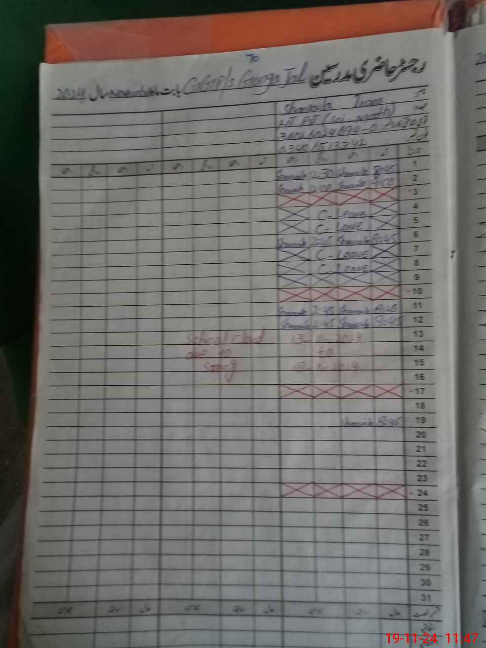 | CNIC | Full Name | Designation | R/C | Absence During Last Calender Month |