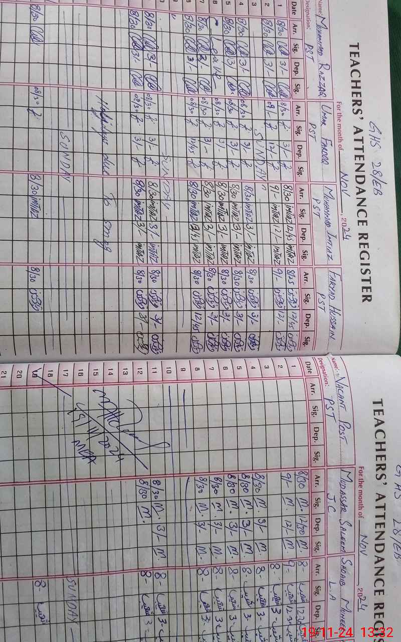 | CNIC | Full Name | Designation | R/C | Absence During Last Calender Month |