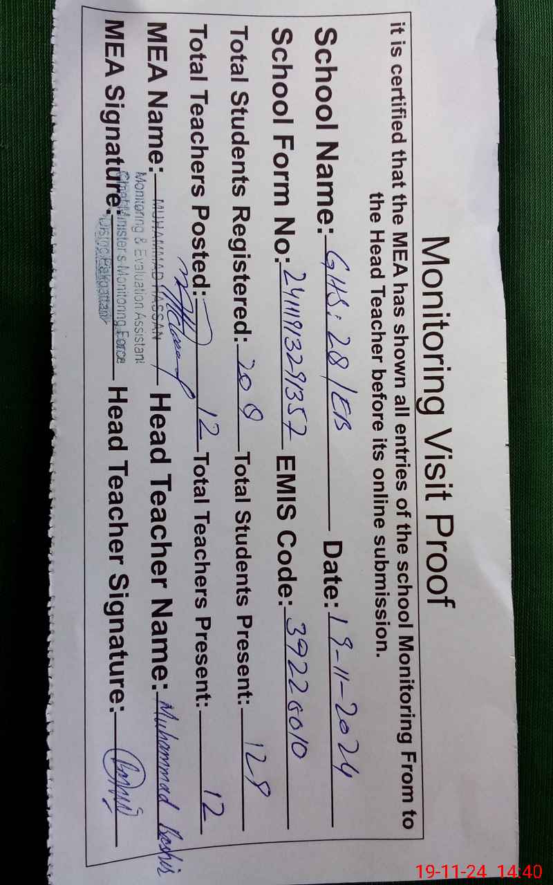 | EMIS Code: 39220010 | Name of School: GHS 28 EB TEH ARIF WALA | |||