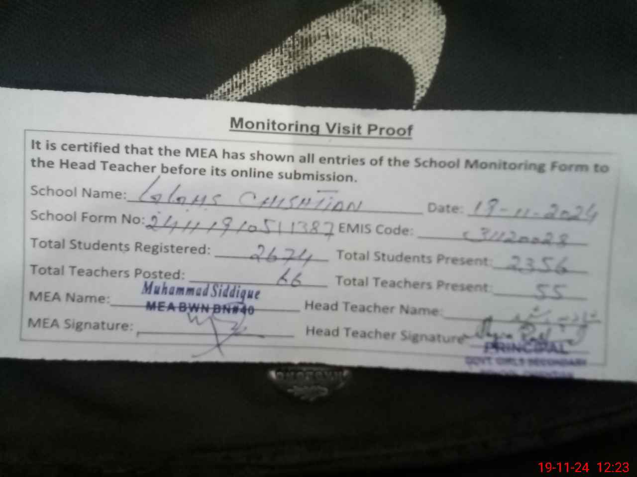 | EMIS Code: 31120028 | Name of School: GGHS CHISHTIAN | |||