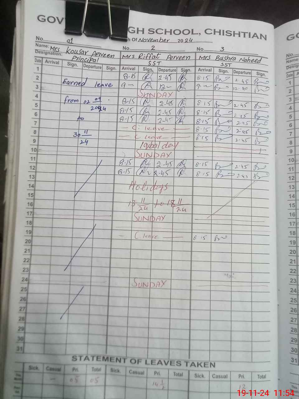 | 31**** | Ko**** Pe**** | PRINCIPAL | Temporary | 31 | 0 | 0 | 0 | 0 | 0 | 0 | 31 | 0 | Earned |