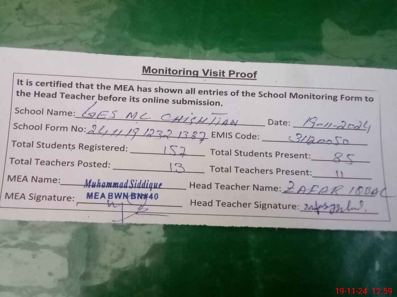 | EMIS Code: 31120050 | Name of School: GES MC CHISHTIAN | |||