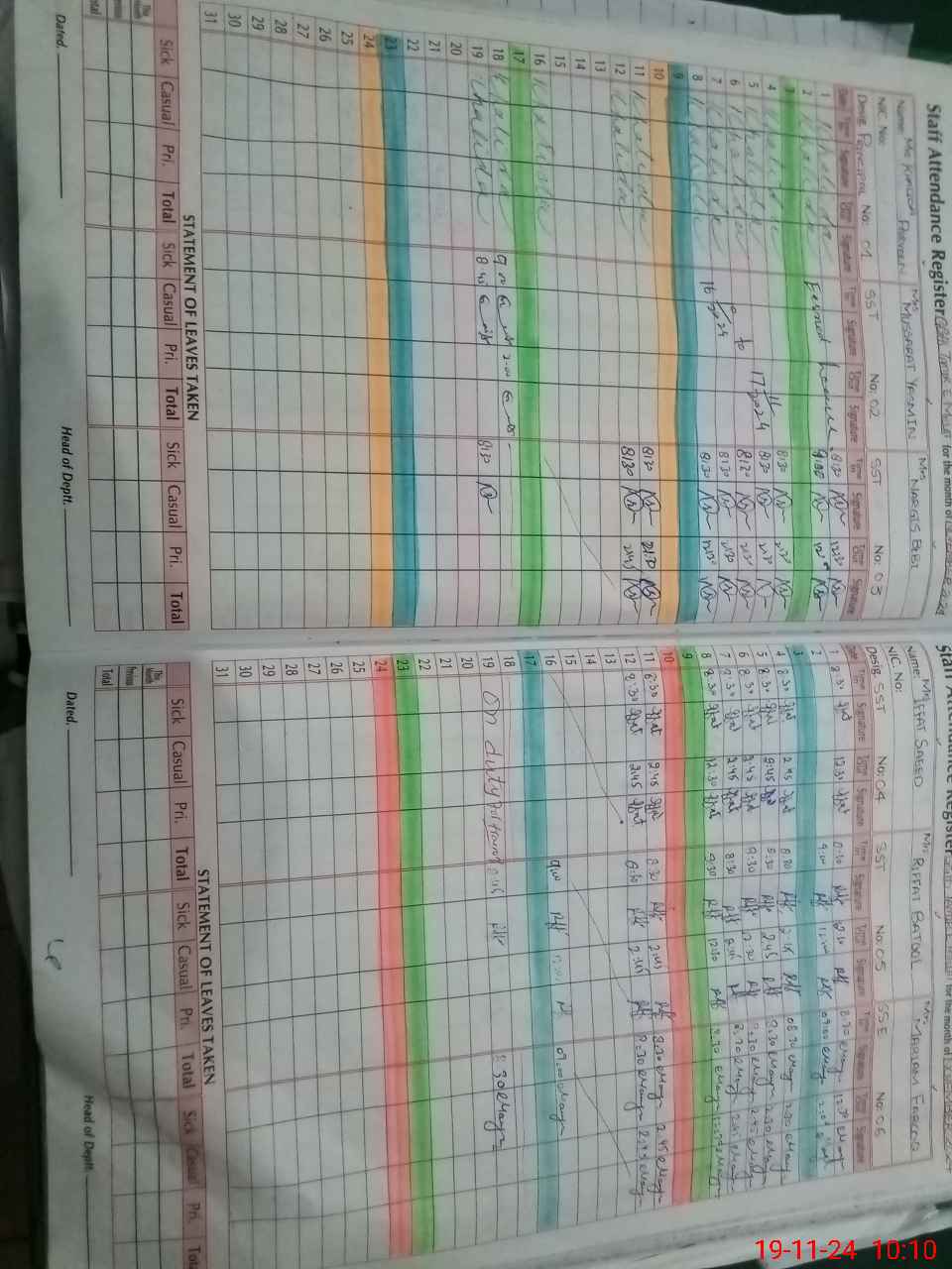 | Leave | Duty | Absent | Maternity | Medical | Ex- Pak |