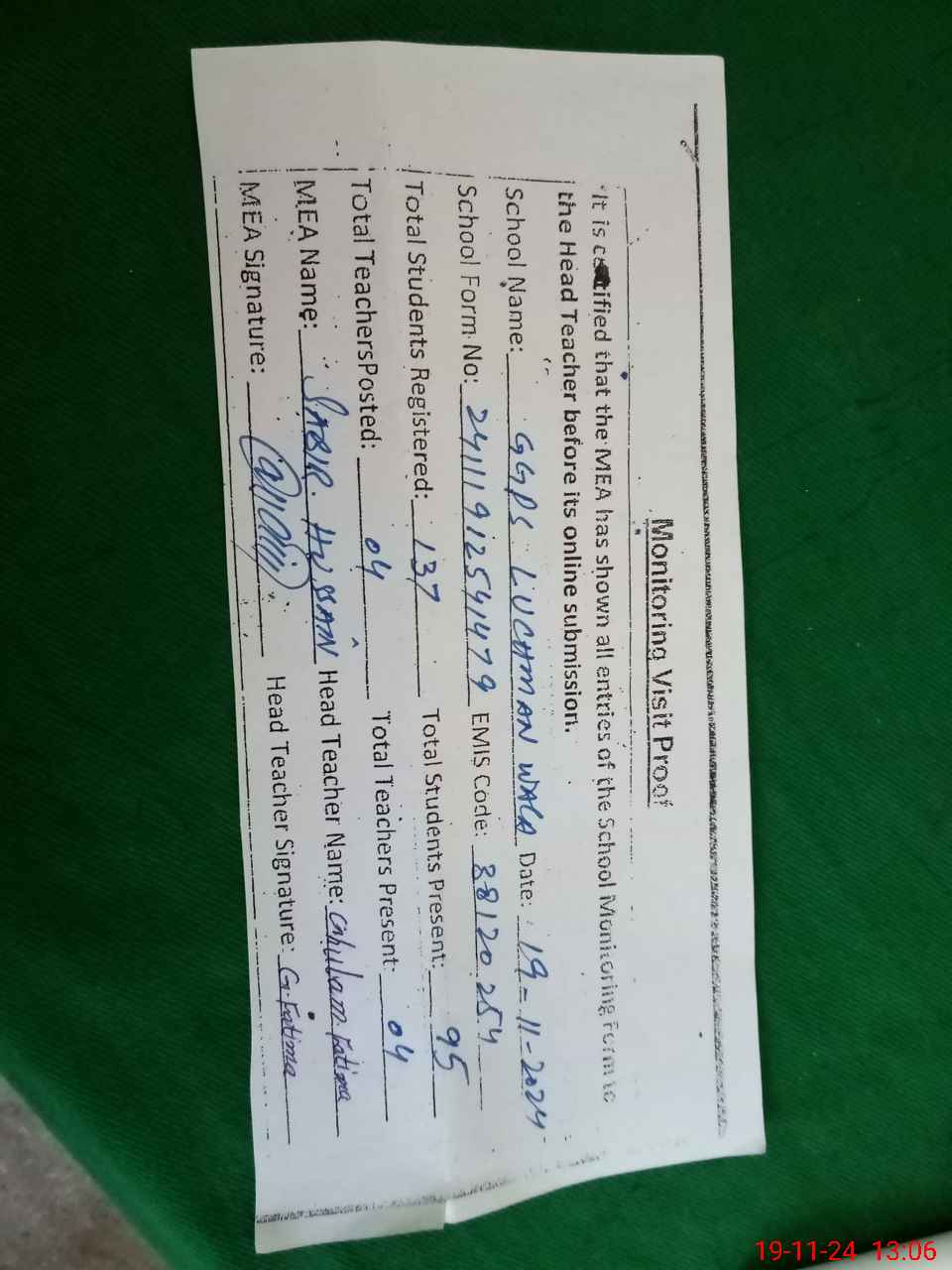 | EMIS Code: 38120254 | Name of School: GGPS LUCHMAN WALA | |||