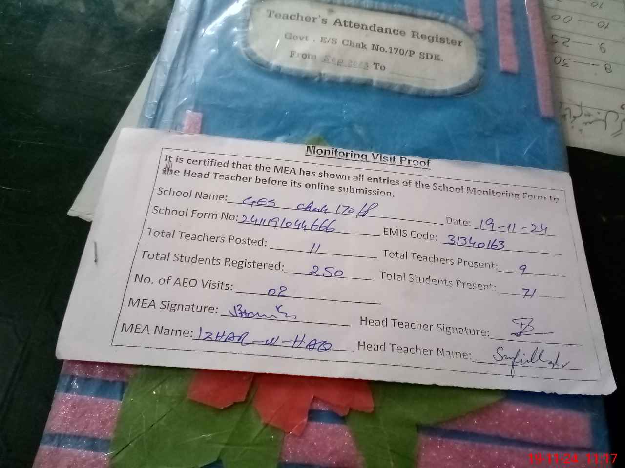 | EMIS Code: 31340163 | Name of School: GES CHAK NO 170/P | |||
