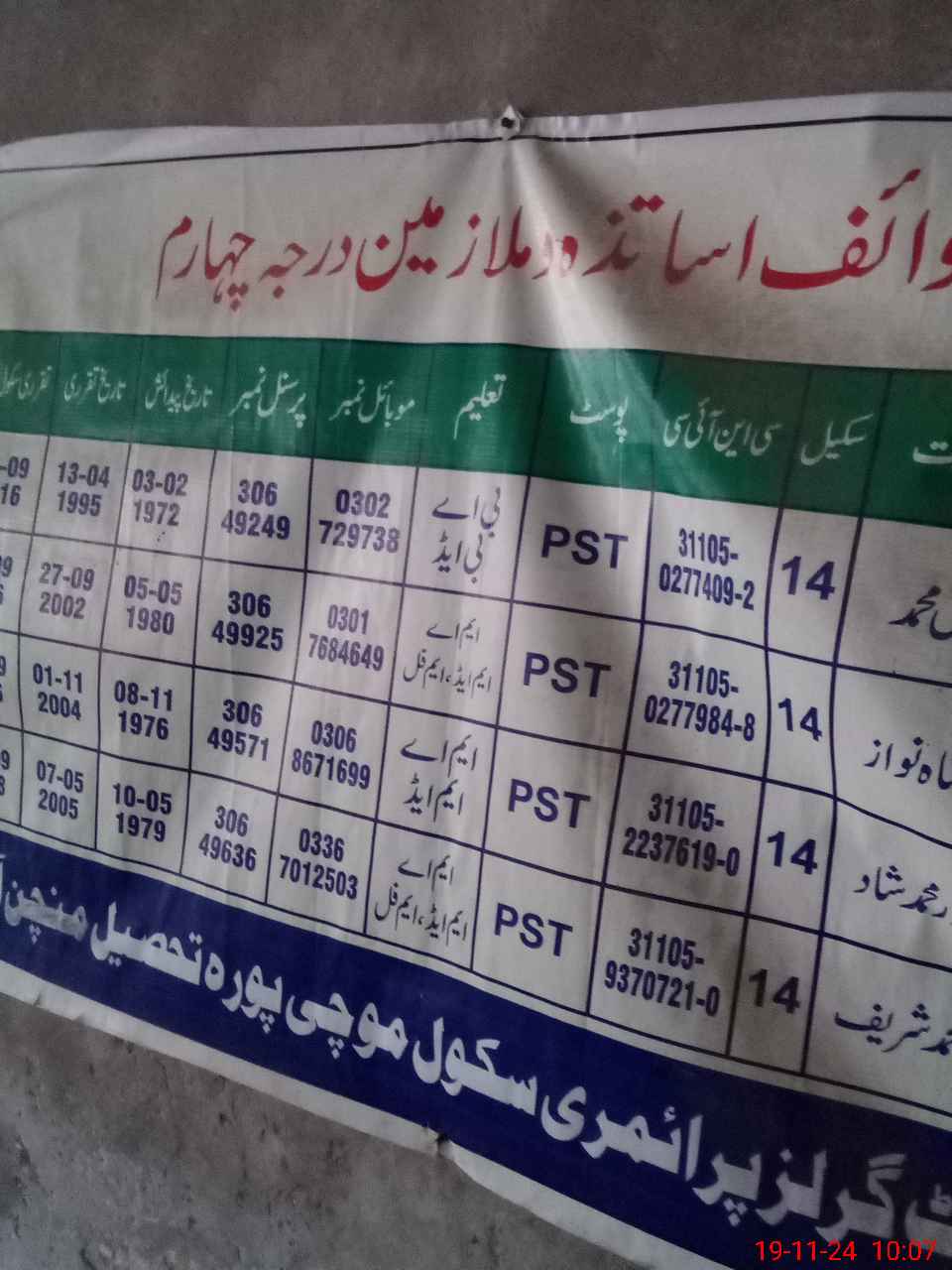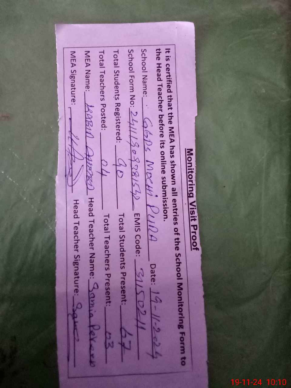 | EMIS Code: 31150211 | Name of School: GGPS MOCHI PURA | |||