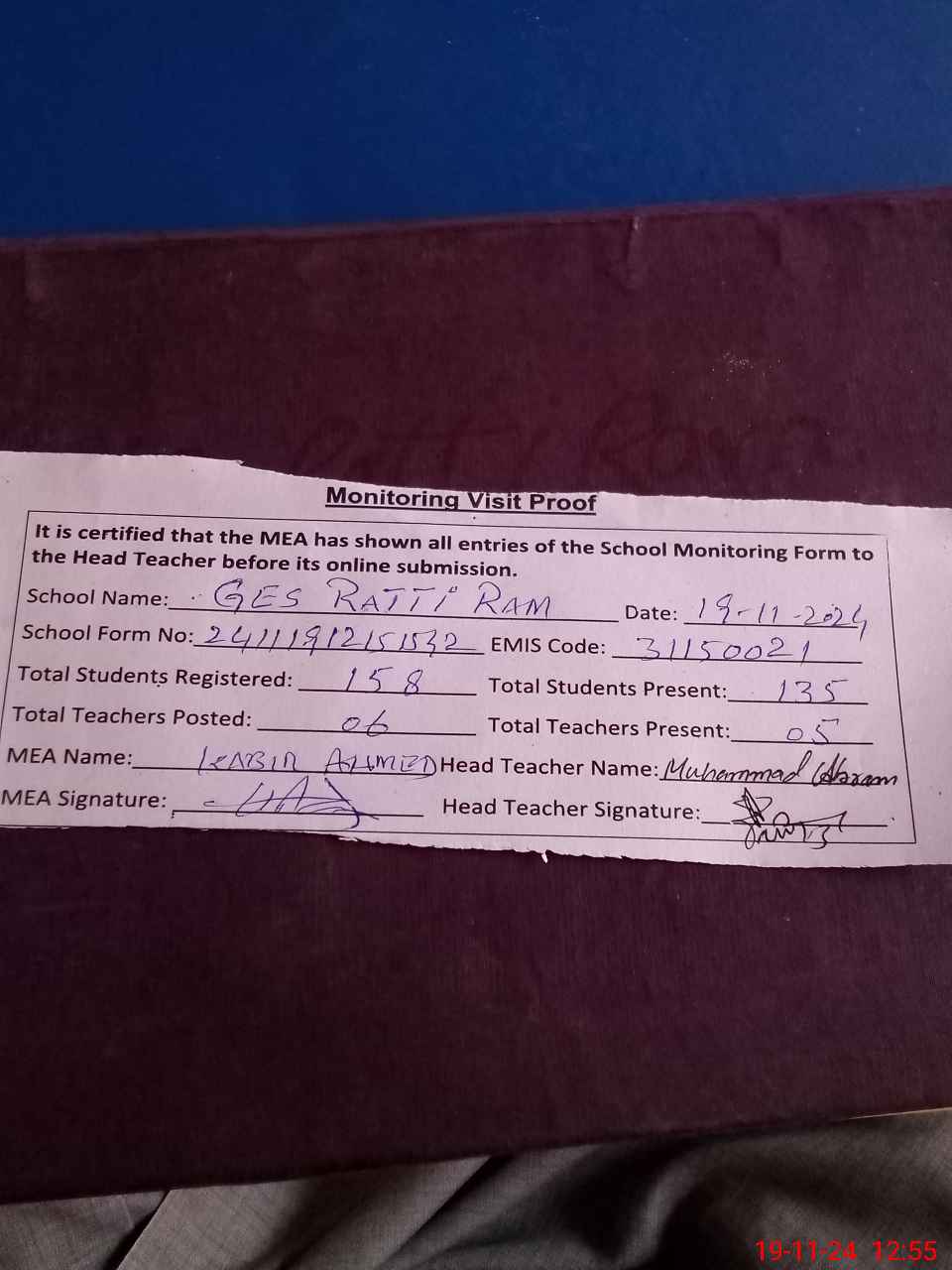 | EMIS Code: 31150021 | Name of School: GES RATTI RAM | |||