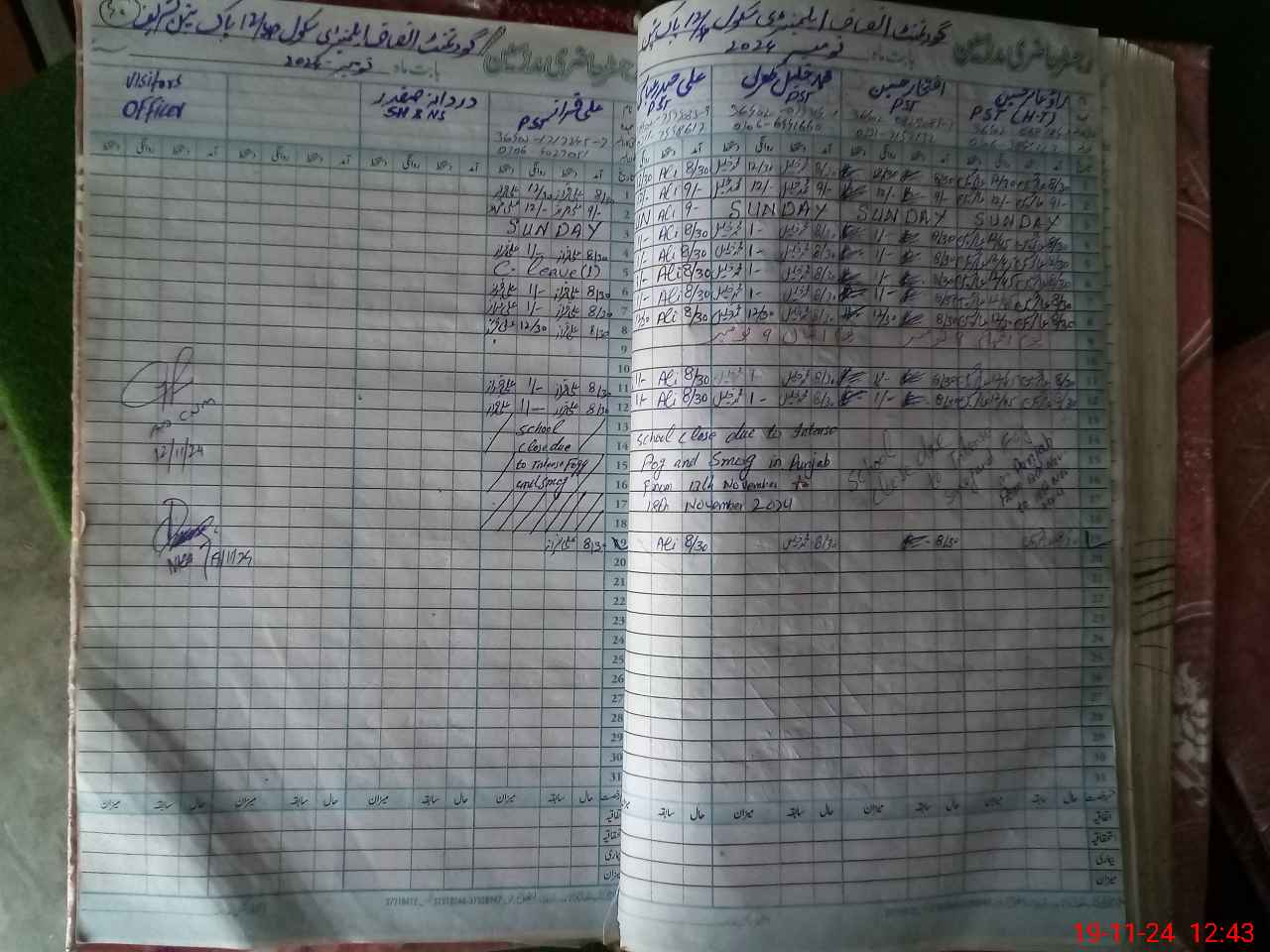 | CNIC | Full Name | Designation | R/C | Absence During Last Calender Month |