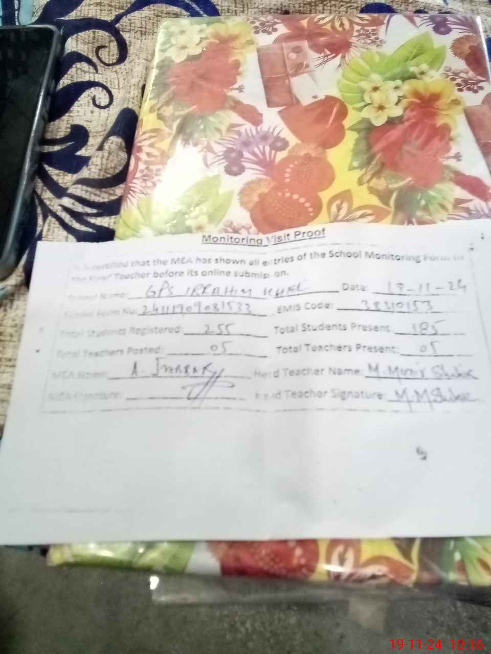 | EMIS Code: 38310153 | Name of School: GPS IBRAHIM KHEL PO TRAGH ISA KHEL MIANWALI | |||