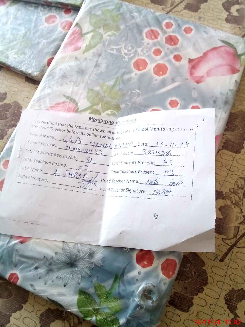 | Attendance Register | Head Teacher | MEA with School | Visit Proof |
