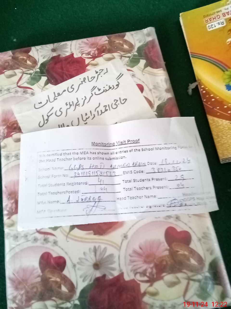 | EMIS Code: 38310350 | Name of School: GGPS HAJI AHMED ARAIN WALA | |||