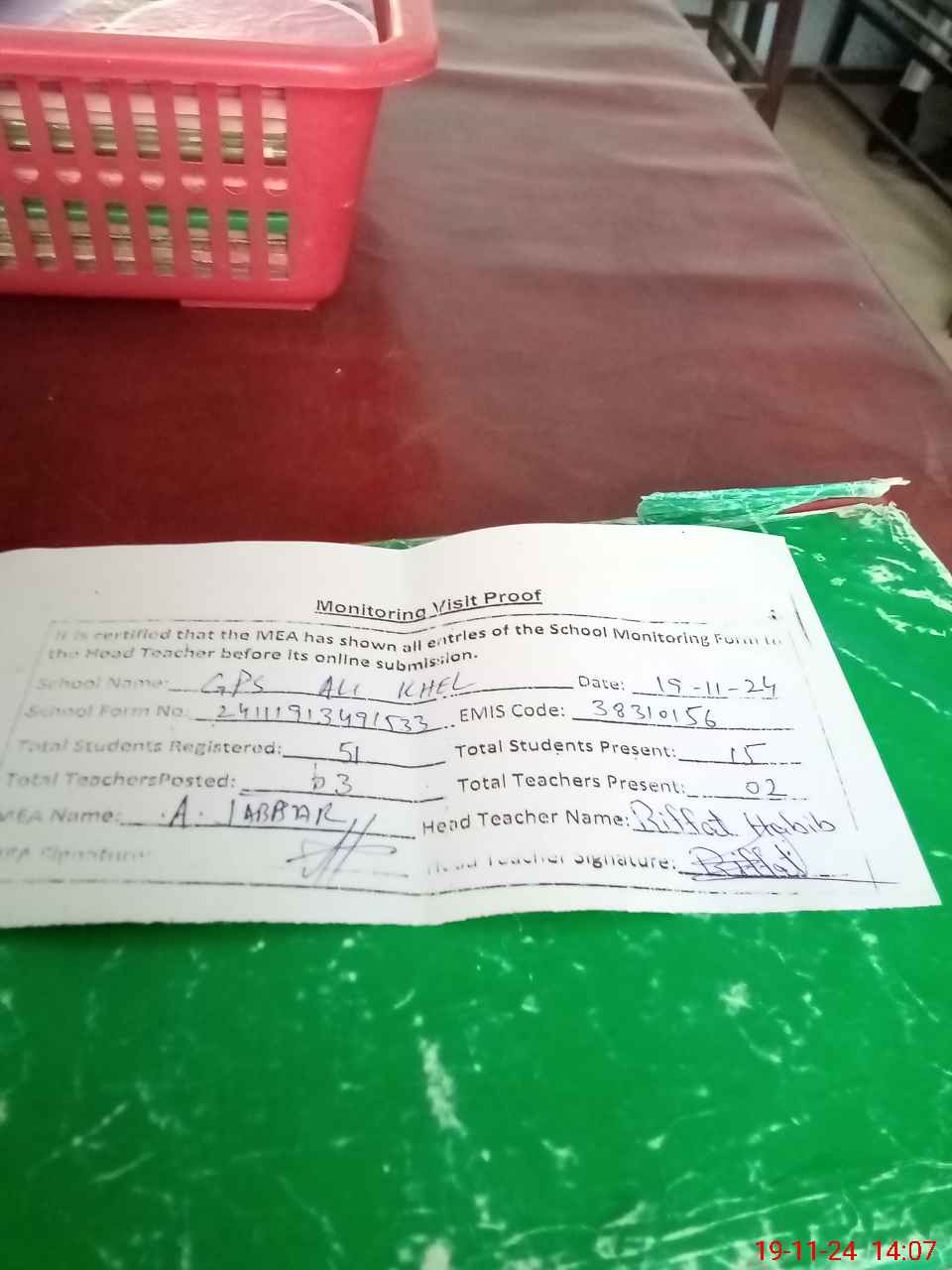 | EMIS Code: 38310156 | Name of School: GPS ALI KHEL WANDHA SHAHBAZ KHEL | |||