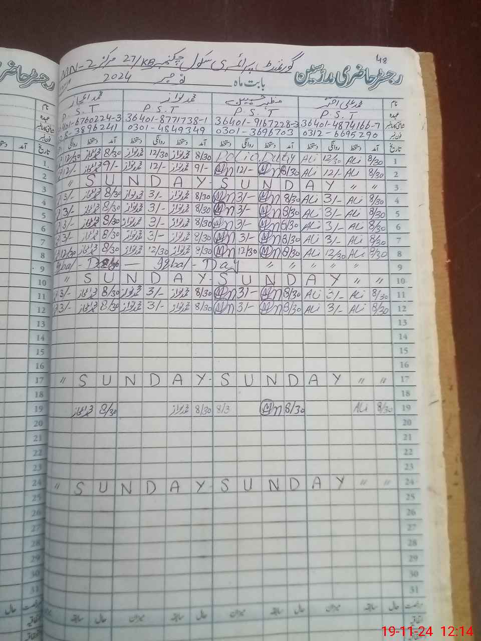 | Name: MU**** AL**** AK**** Designation: (School Headmaster's/Headmistress's) PST Phone/Cell Number: 03**** |