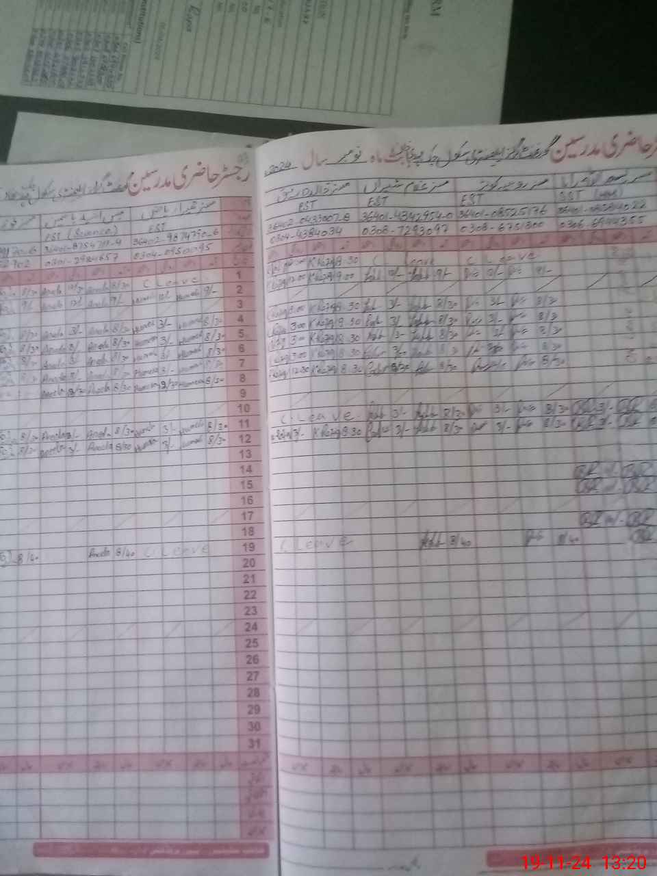 | CNIC | Full Name | Designation | R/C | Absence During Last Calender Month |