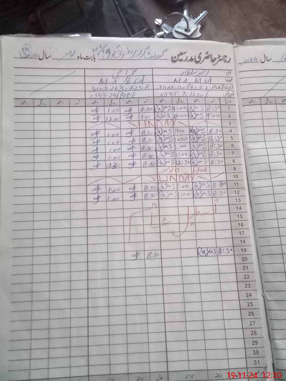 | CNIC | Full Name | Designation | R/C | Absence During Last Calender Month |