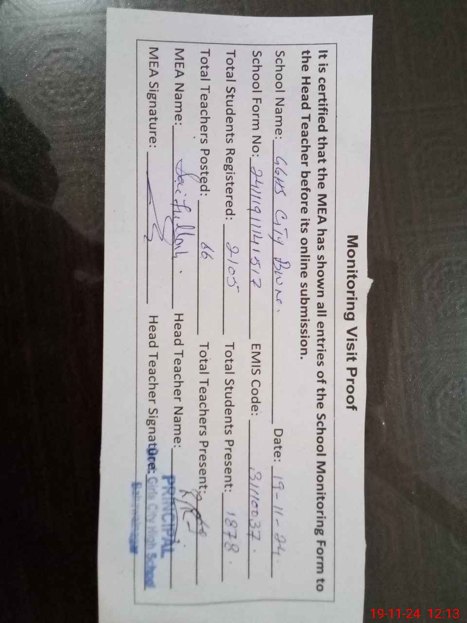 | EMIS Code: 31110037 | Name of School: GGHS CITY BAHAWALNAGAR | |||