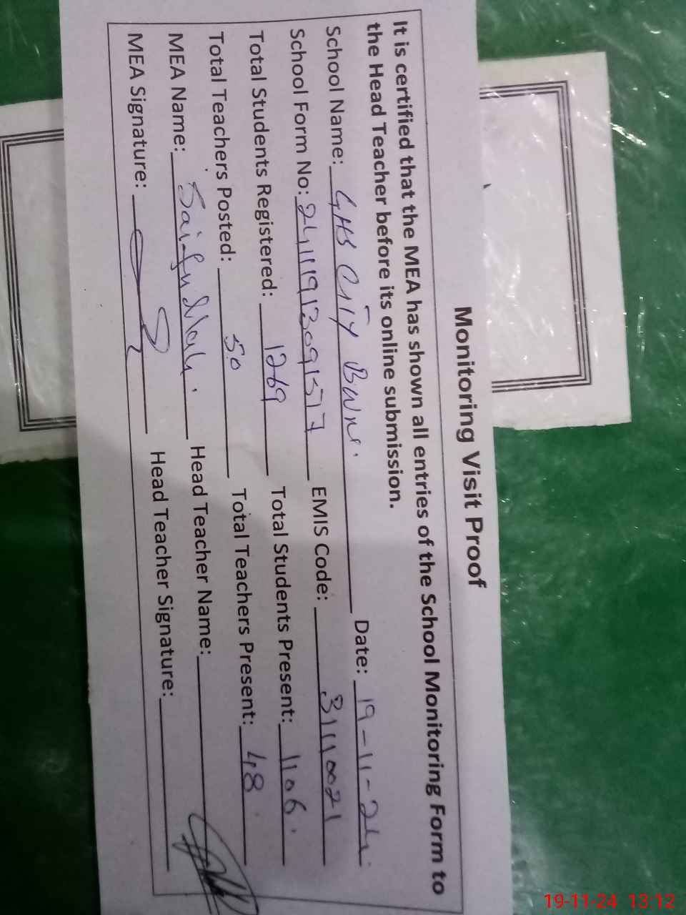 | EMIS Code: 31110021 | Name of School: GHS CITY BAHAWALNAGAR | |||