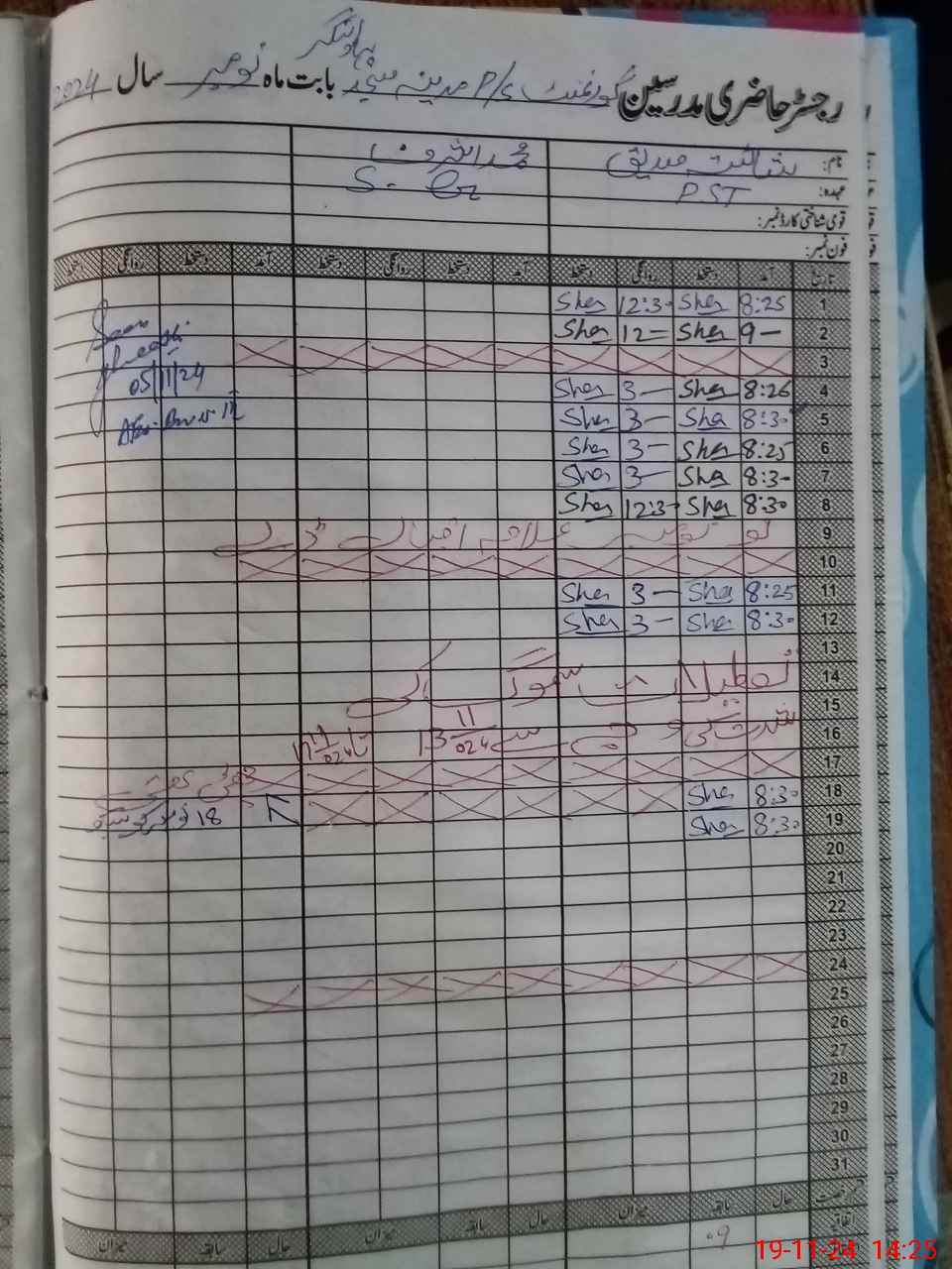 | Name: Sh**** Designation: (School Headmaster's/Headmistress's) PST Phone/Cell Number: 03**** |