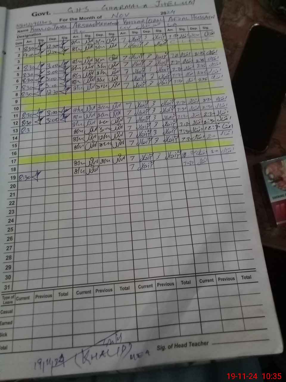 | CNIC | Full Name | Designation | R/C | Absence During Last Calender Month |