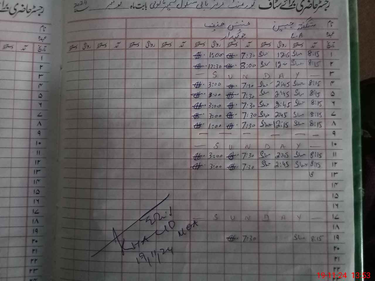 | CNIC | Full Name | Designation | R/C | Absence During Last Calender Month |