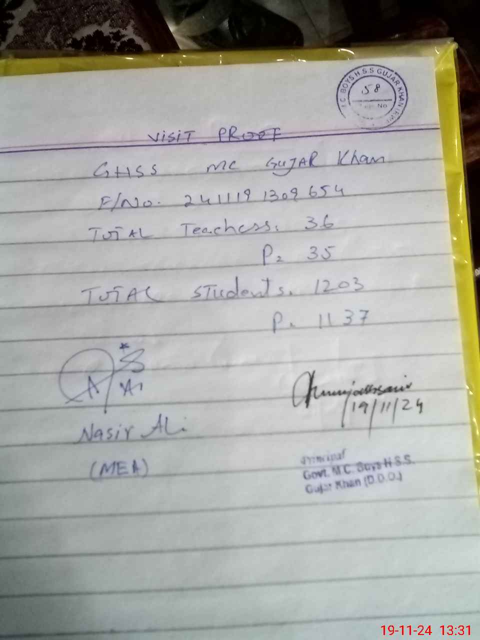 | EMIS Code: 37360004 | Name of School: GHSS MC GUJAR KHAN | |||