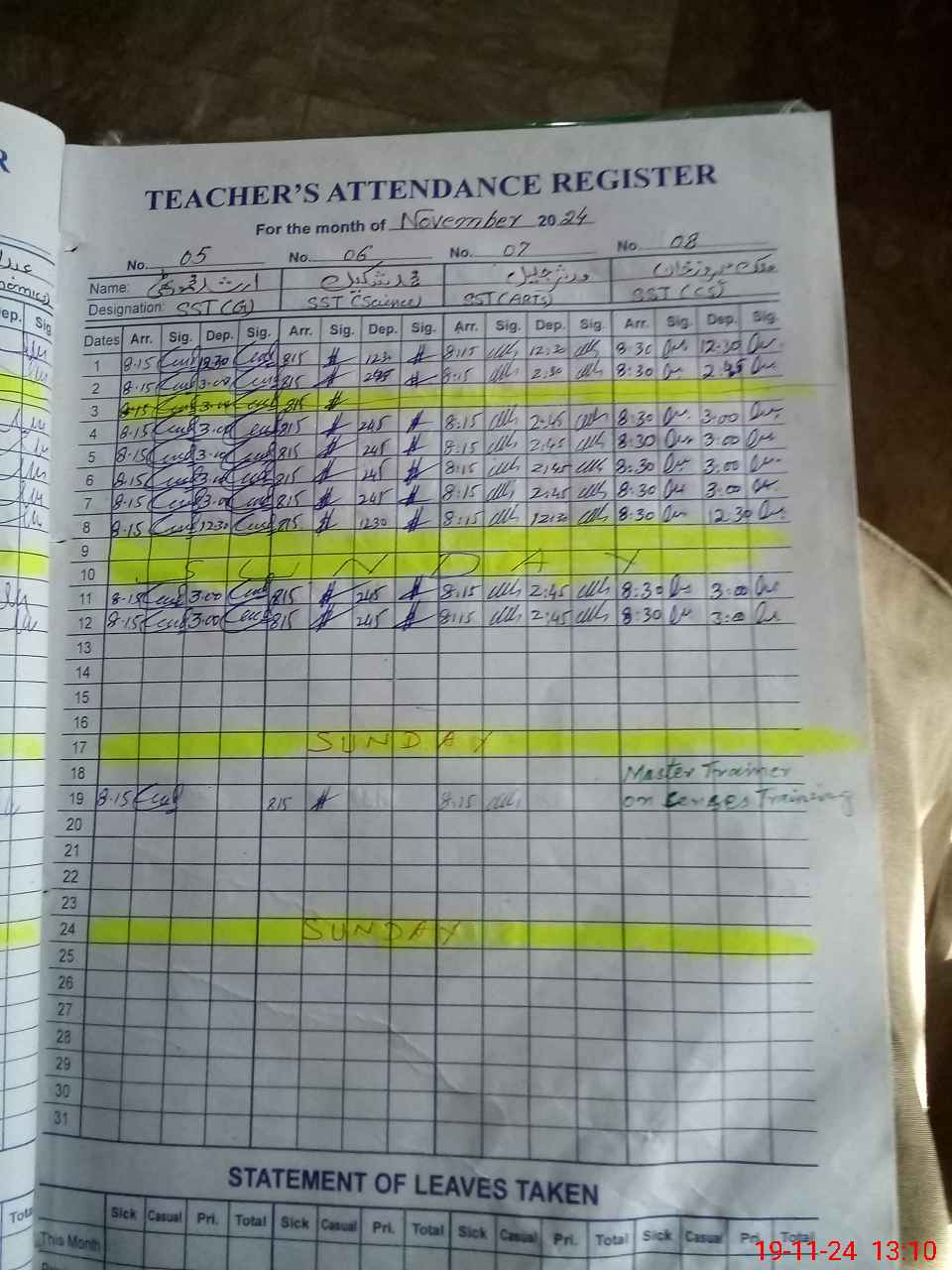 | 37**** | Su**** Ab**** | EST | Regular | 0 | 0 | 0 | 0 | 0 | 0 | 0 | 0 | 0 | Exam Duty |