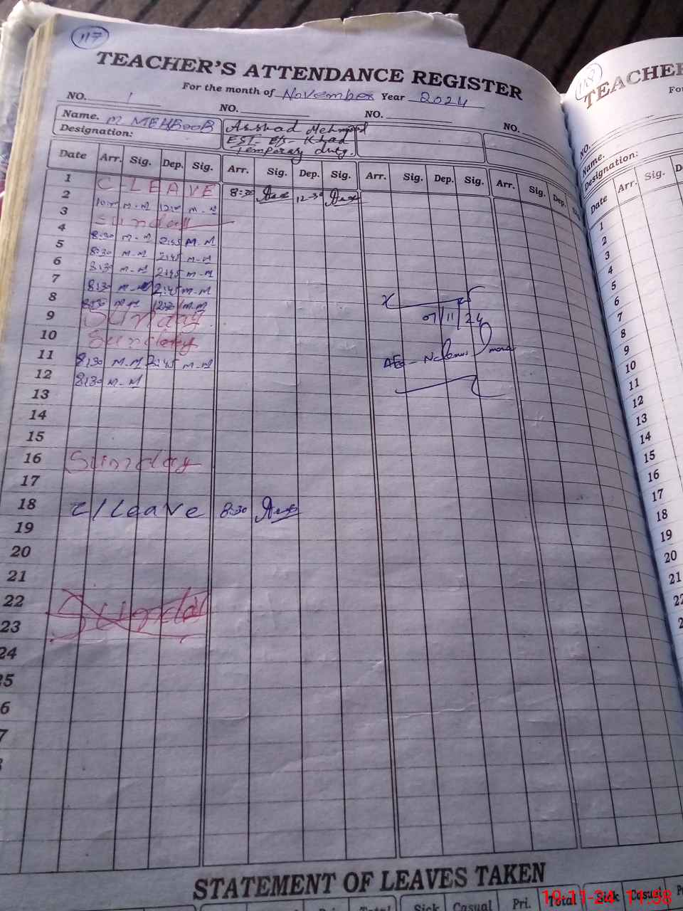 | Leave | Duty | Absent | Maternity | Medical | Ex- Pak |
