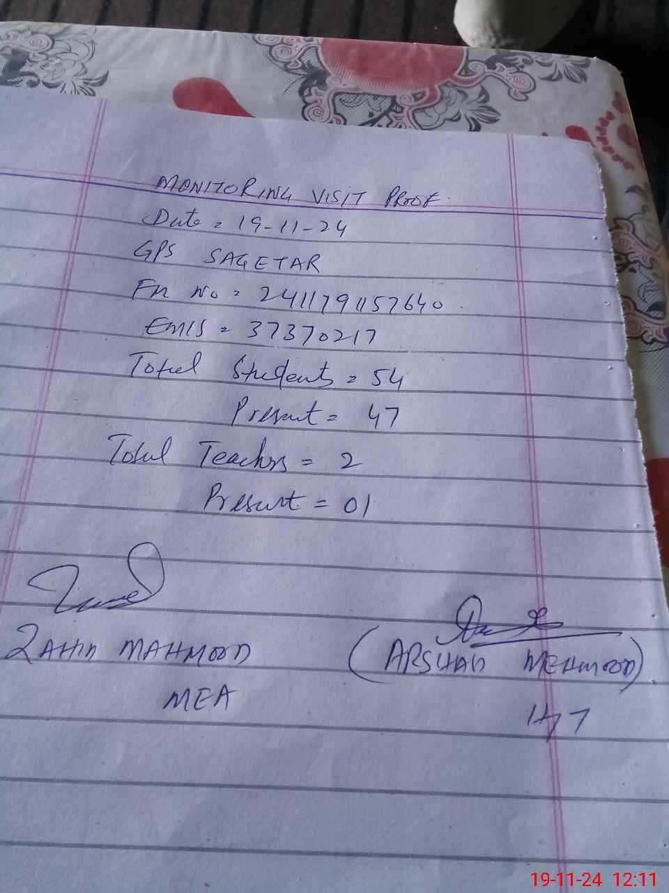 | EMIS Code: 37370217 | Name of School: GPS SAGATER | |||
