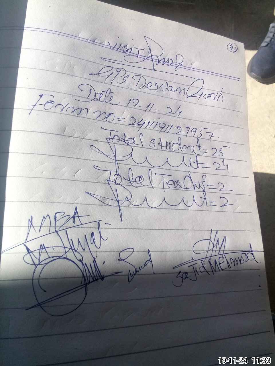 | Attendance Register | Head Teacher | MEA with School | Visit Proof |