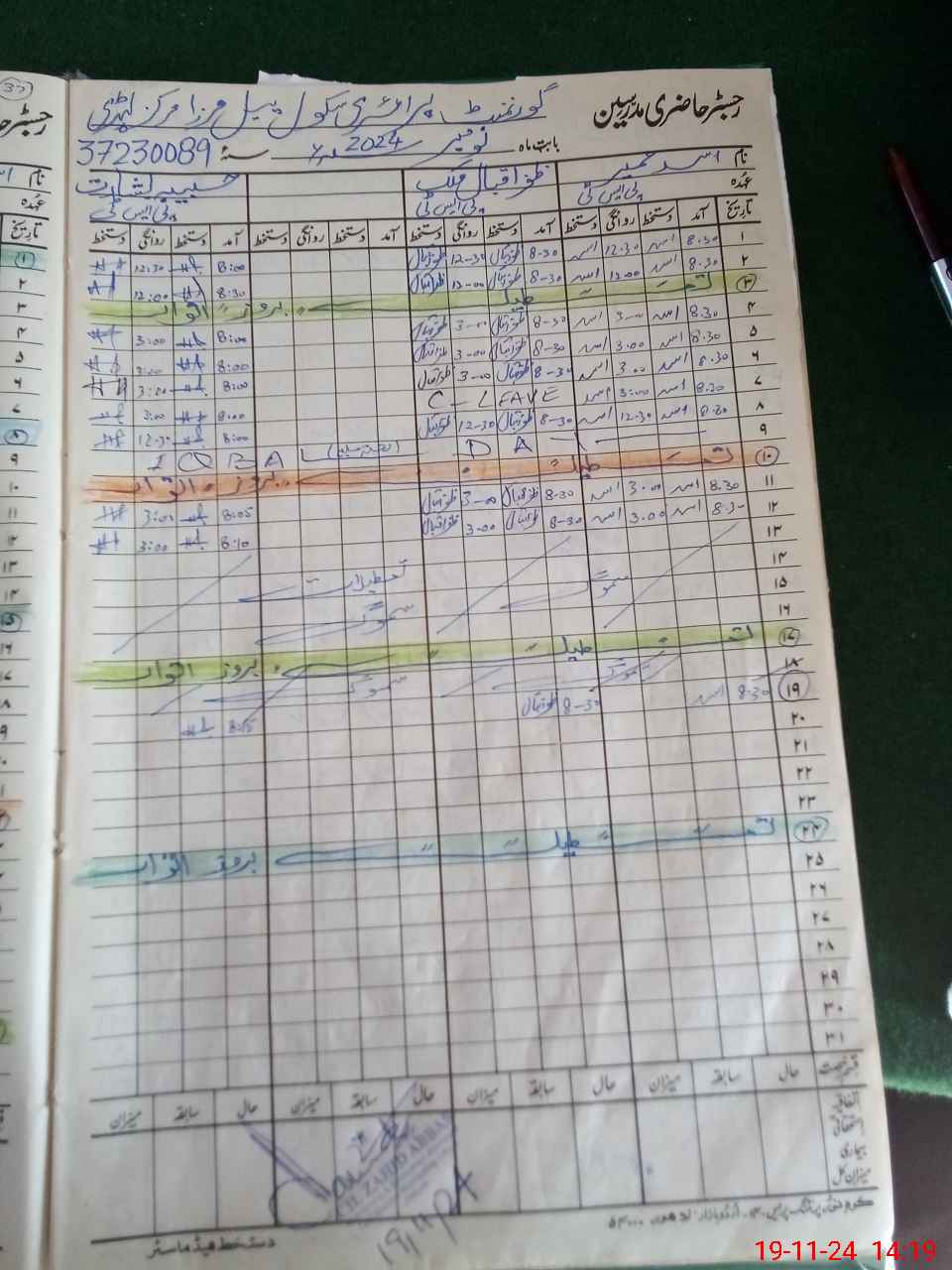 | CNIC | Full Name | Designation | R/C | Absence During Last Calender Month |