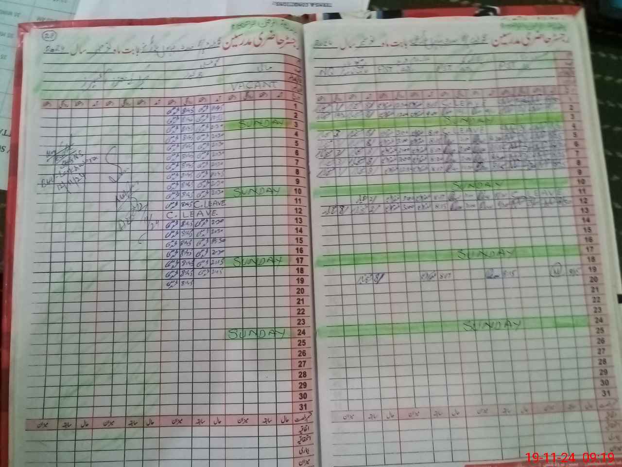 | CNIC | Full Name | Designation | R/C | Absence During Last Calender Month |