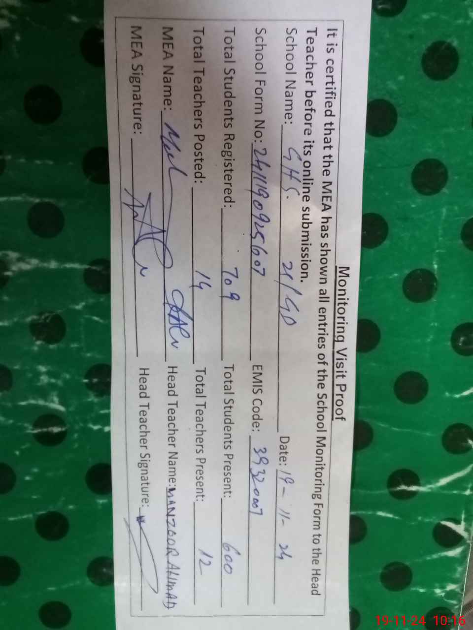 | EMIS Code: 39320007 | Name of School: GHS 21/G.D | |||