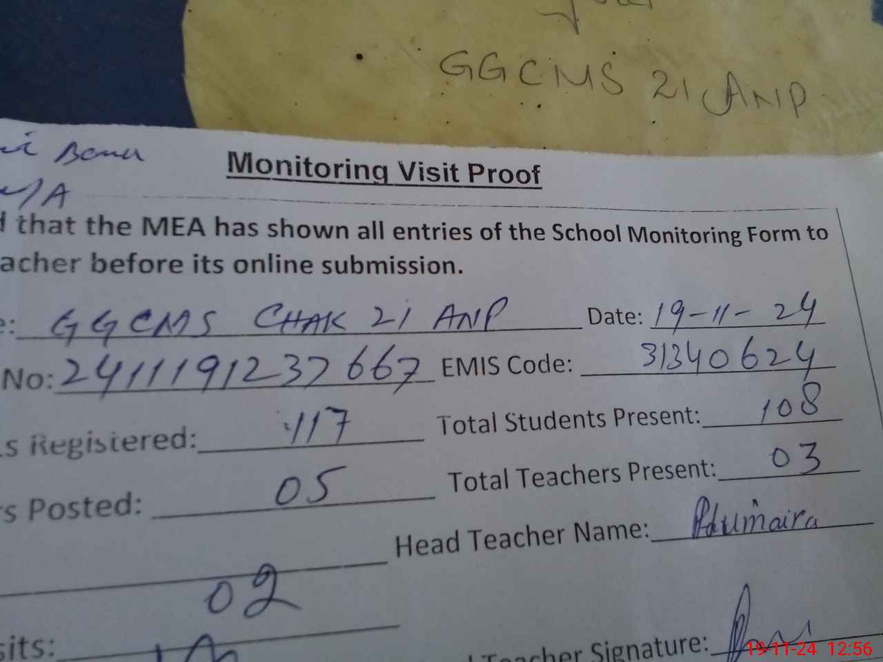 | EMIS Code: 31340624 | Name of School: GGCMS CHAK NO.21/NP | |||