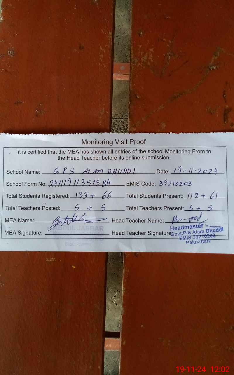 | EMIS Code: 39210203 | Name of School: GPS ALAM DHUDDI | |||