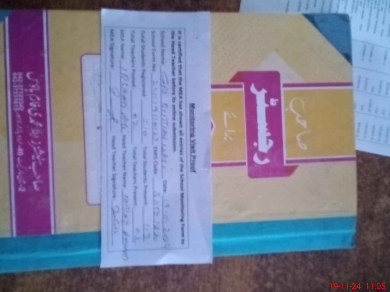 | Attendance Register | Head Teacher | MEA with School | Visit Proof |