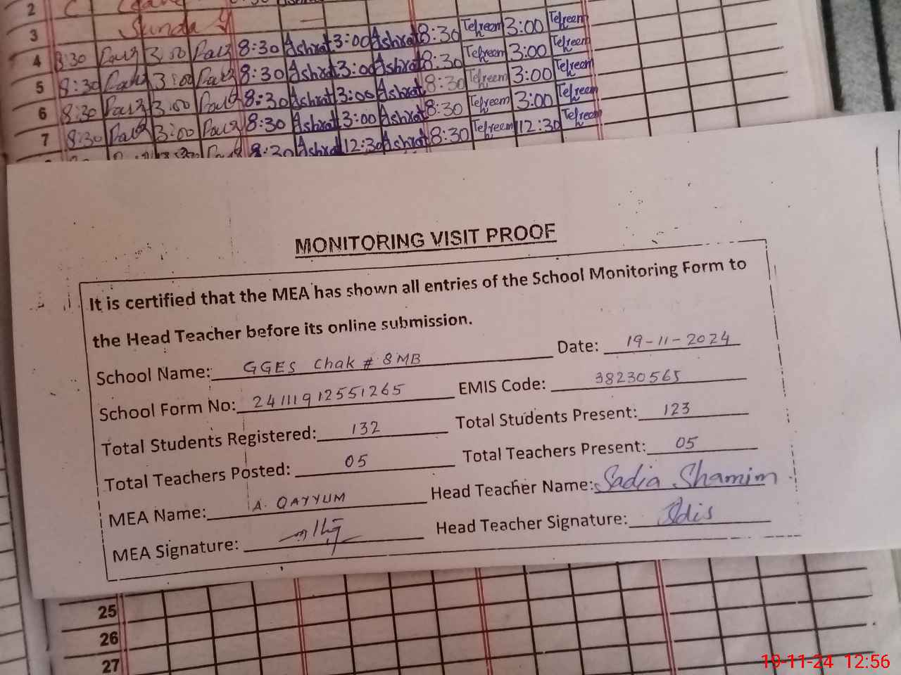 | EMIS Code: 38230565 | Name of School: GGES CHAK NO.8 MB | |||