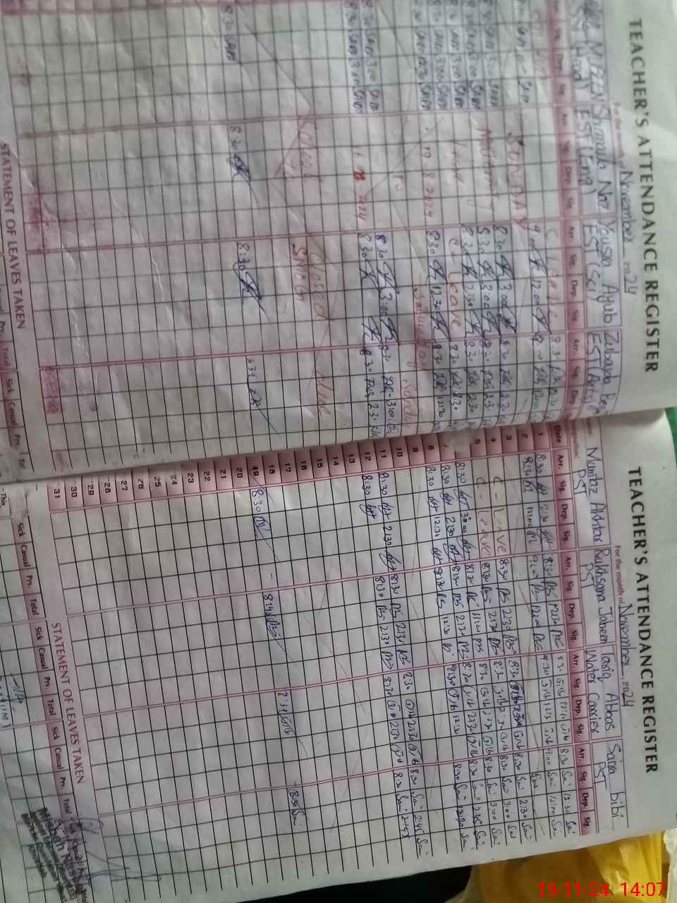| CNIC | Full Name | Designation | R/C | Absence During Last Calender Month |