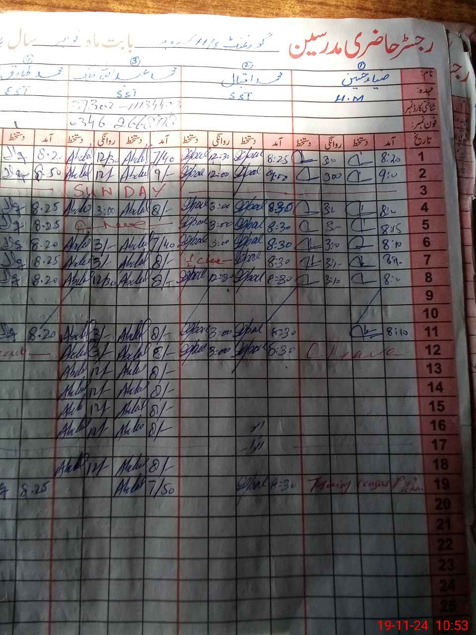 | CNIC | Full Name | Designation | R/C | Absence During Last Calender Month |