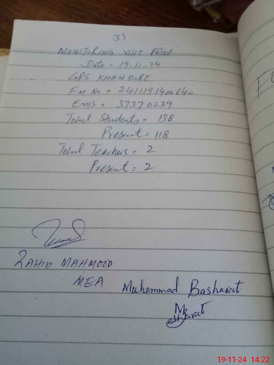 | EMIS Code: 37370239 | Name of School: GPS KHANDORE | |||