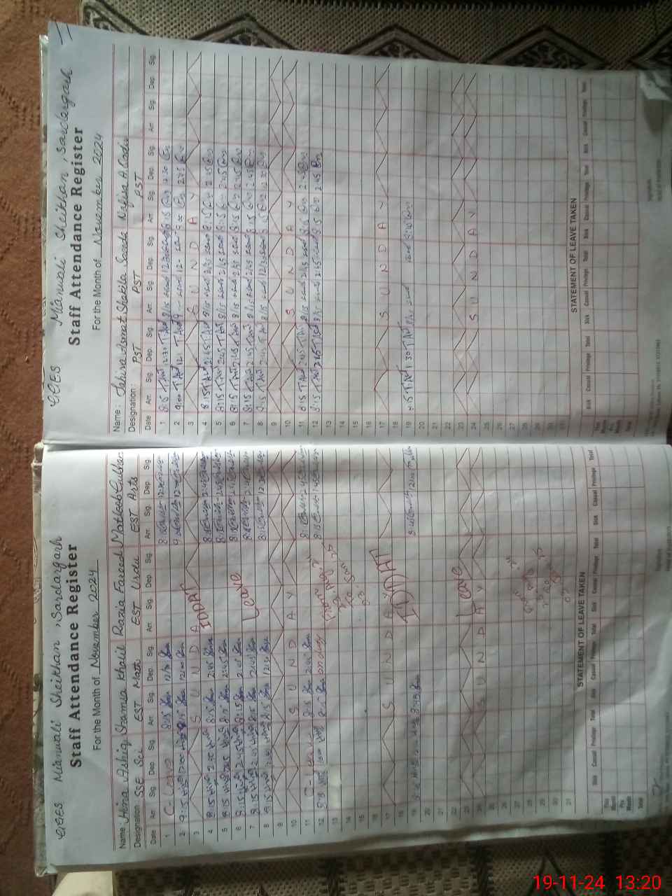 | CNIC | Full Name | Designation | R/C | Absence During Last Calender Month |