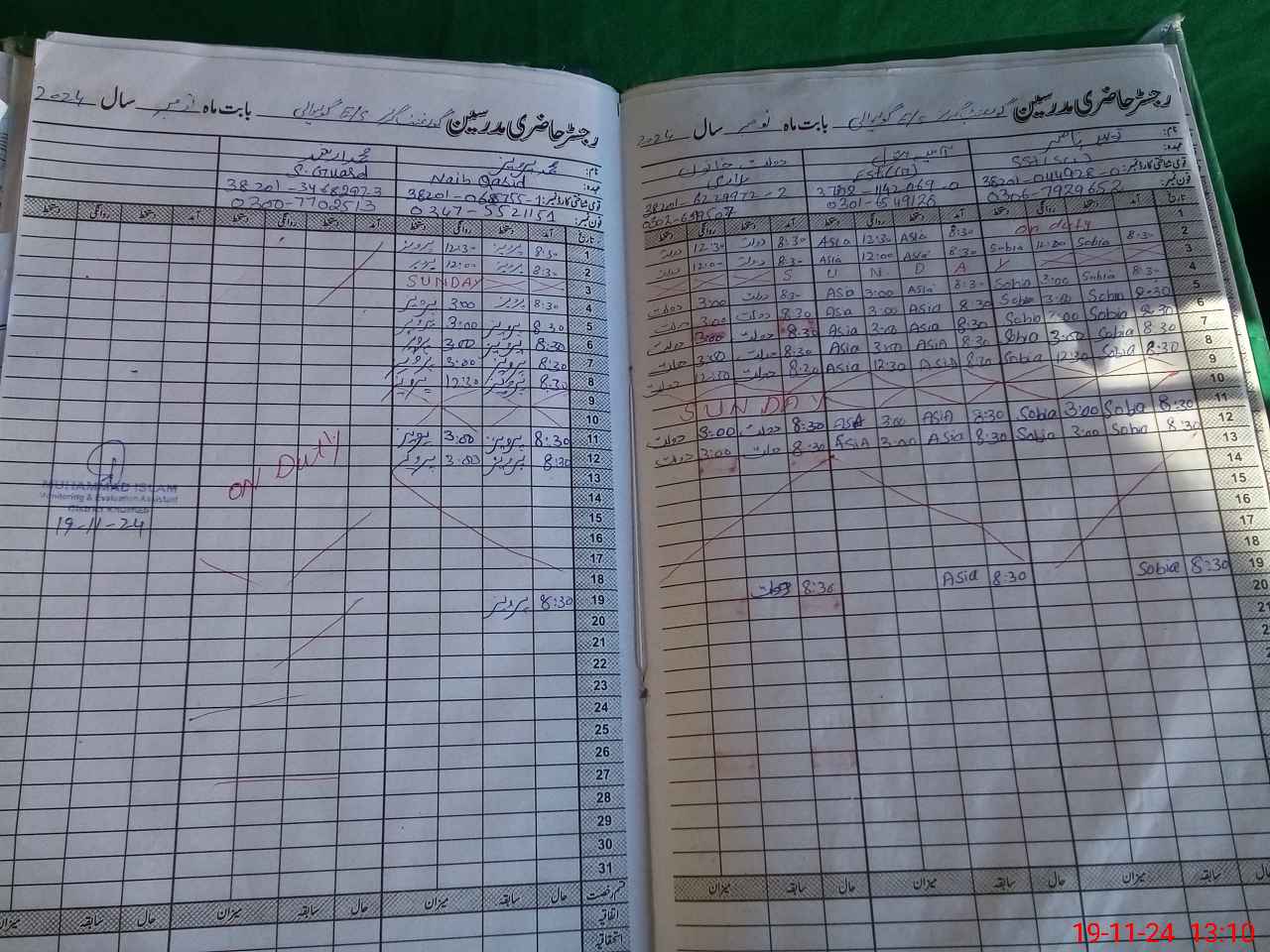 | CNIC | Full Name | Designation | R/C | Absence During Last Calender Month |
