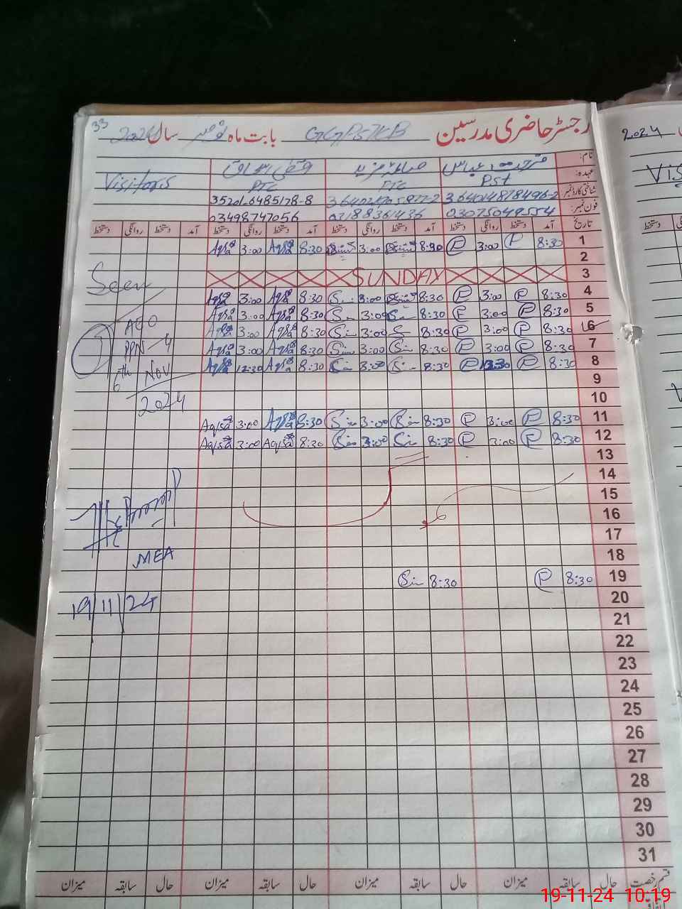 | Monitoring Date: 19-11-2024 | Start Time: 19-11-2024 09:51 AM | End Time: 19-11-2024 10:20 AM | Name of MEA: MU**** AS**** | |